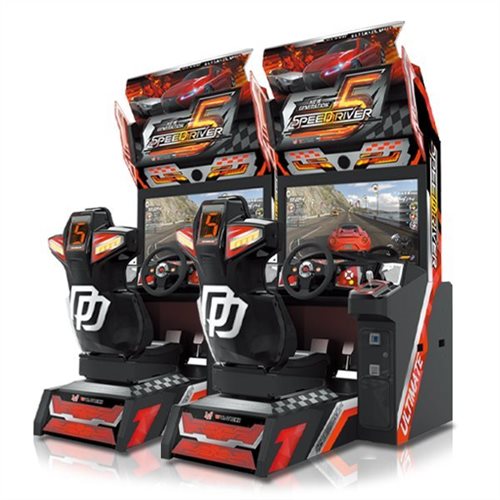 Speed Driver 5 boasts a beautiful cabinet and a force feedback steering wheel with nitro buttons and 6-speed manual shifter creating an amazing driving simulation experience.